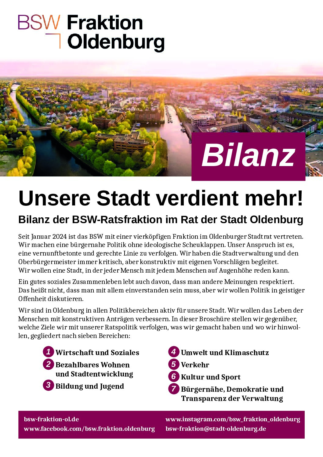 Bemühungen endlich von Erfolg gekrönt! Der BSW-Fraktion ist es nach jahrelangem Bemühen endlich gelungen, dass die Mehrheit im Oldenburger [...]